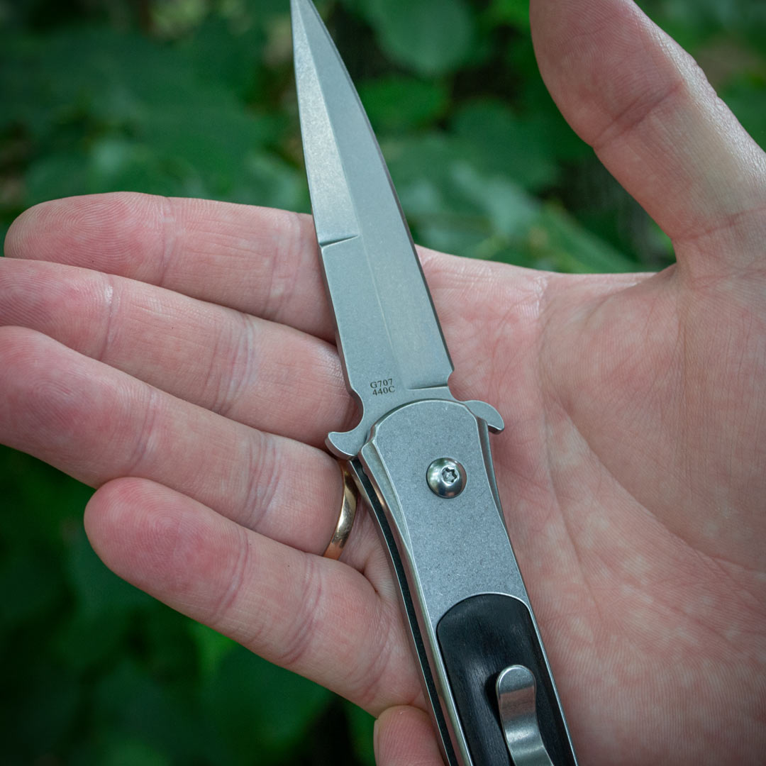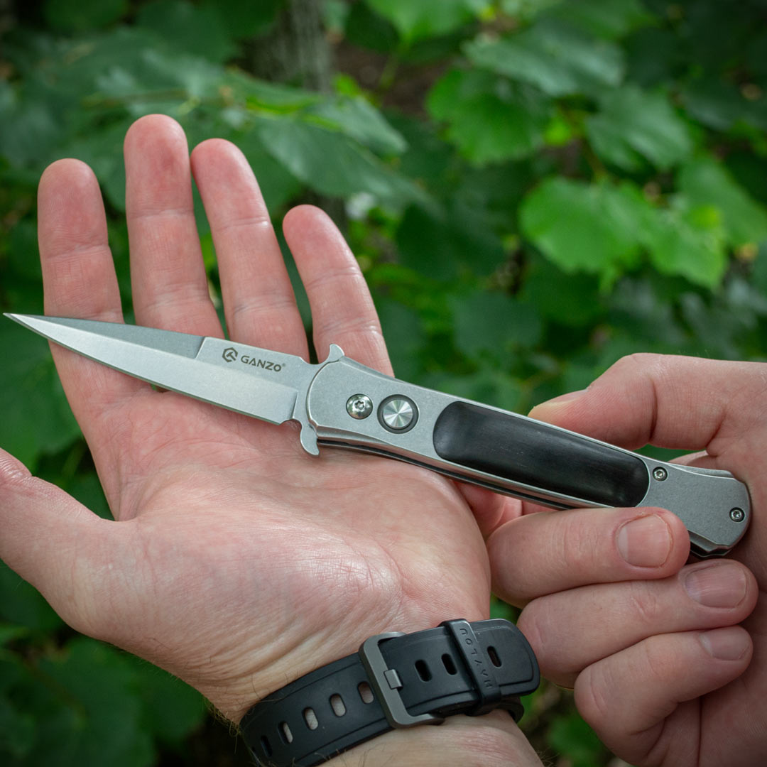 Ніж Ganzo G707 – це поєднання елегантності, практичності та надійності. Його головною відмінністю є застосування сучасного замкового механізму Button Lock (кнопковий замок). Саме він забезпечує безпечну та зручну фіксацію леза під час роботи. У відкритому вигляді довжина ножа становить 204 мм, а в складеному – лише 118 мм, що робить модель зручною для щоденного носіння.