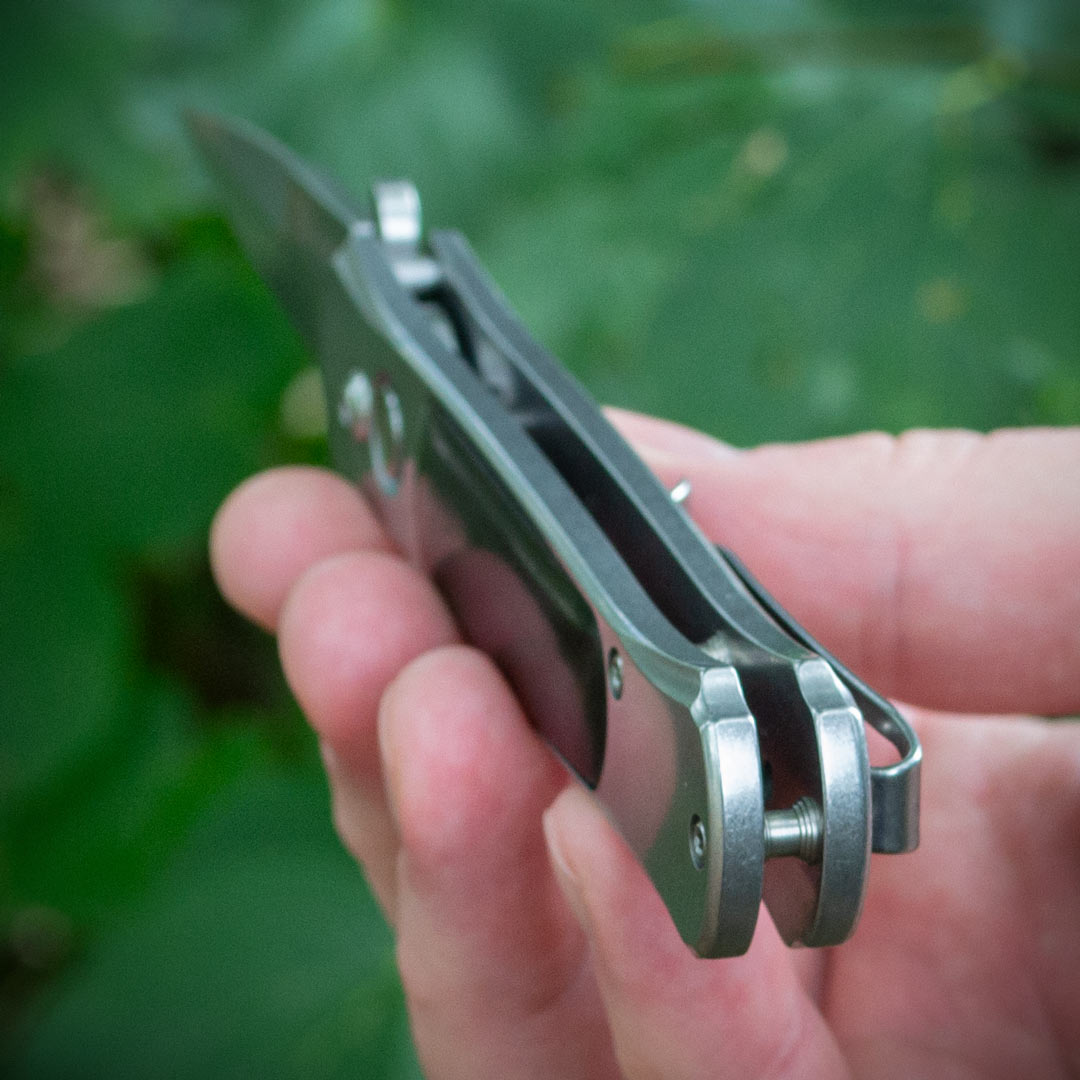 Замок Button Lock – це практичне рішення, що гарантує надійне блокування клинка. Однак слід враховувати, що механізм потребує догляду: він чутливий до потрапляння пилу та бруду, тому для безперебійної роботи рекомендується періодичне очищення.