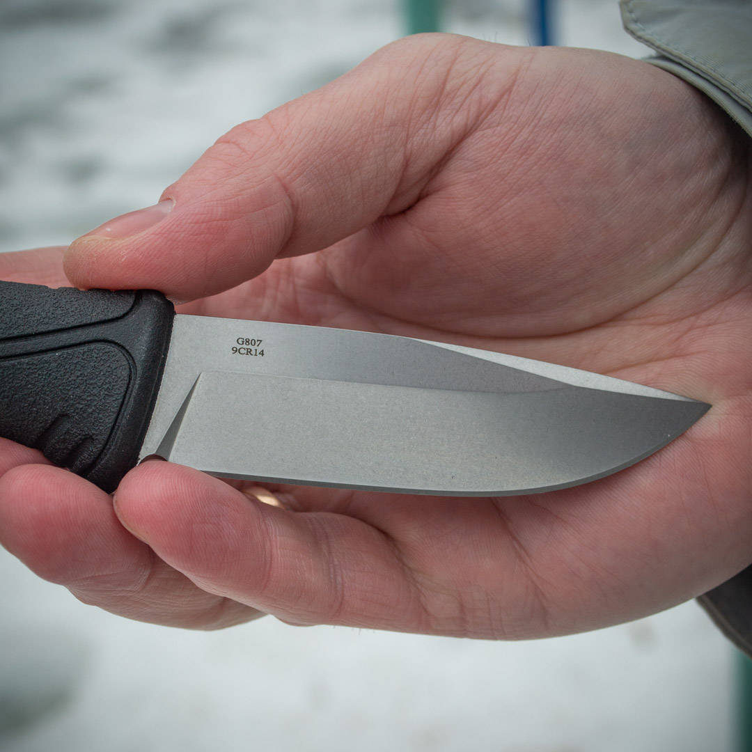 Дизайн моделі G807 перегукується з попередником G806, однак нова модель має покращену ергономіку. Клинок довжиною 88 мм з класичним профілем Drop Point демонструє високу функціональність при виконанні різноманітних завдань — від приготування їжі до робіт із деревиною, тканиною або синтетикою. Товщина обуха — 3.3 мм — гарантує додаткову міцність та стійкість леза до механічних навантажень.