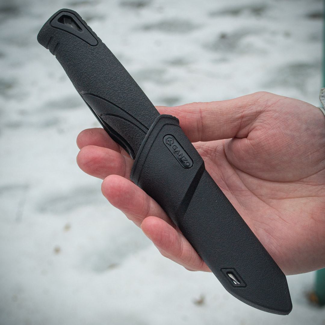 Ніж туристичний Ganzo G807BK важить лише 96 грамів, що робить його зручним у транспортуванні. У комплекті передбачено фірмові піхви з поліпропілену, які щільно фіксують ніж. Піхви оснащені затискачем для кріплення до спорядження чи пояса, а також мають дренажний отвір, через який стікає залишкова волога після використання.