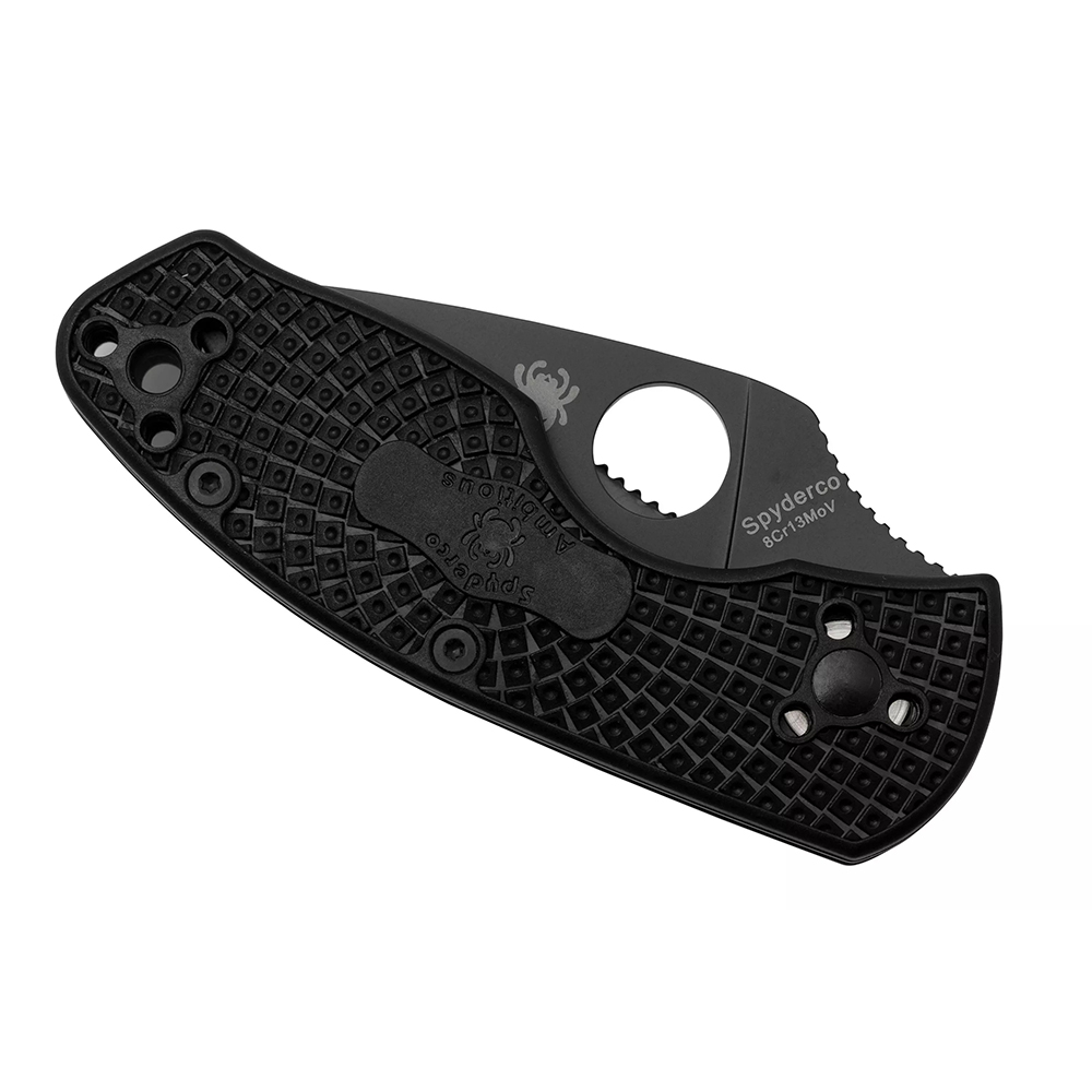 Spyderco Ambitious Lightweight Black Blade C148PBBK — це компактний та практичний складаний ніж, створений для щоденного використання. Модель належить до доступної лінійки Value, яка поєднує фірмову якість Spyderco з оптимальною ціною. Ніж відрізняється легкою конструкцією, зручною ергономікою та чорним клинком, що забезпечує універсальність і стриманий тактичний вигляд.