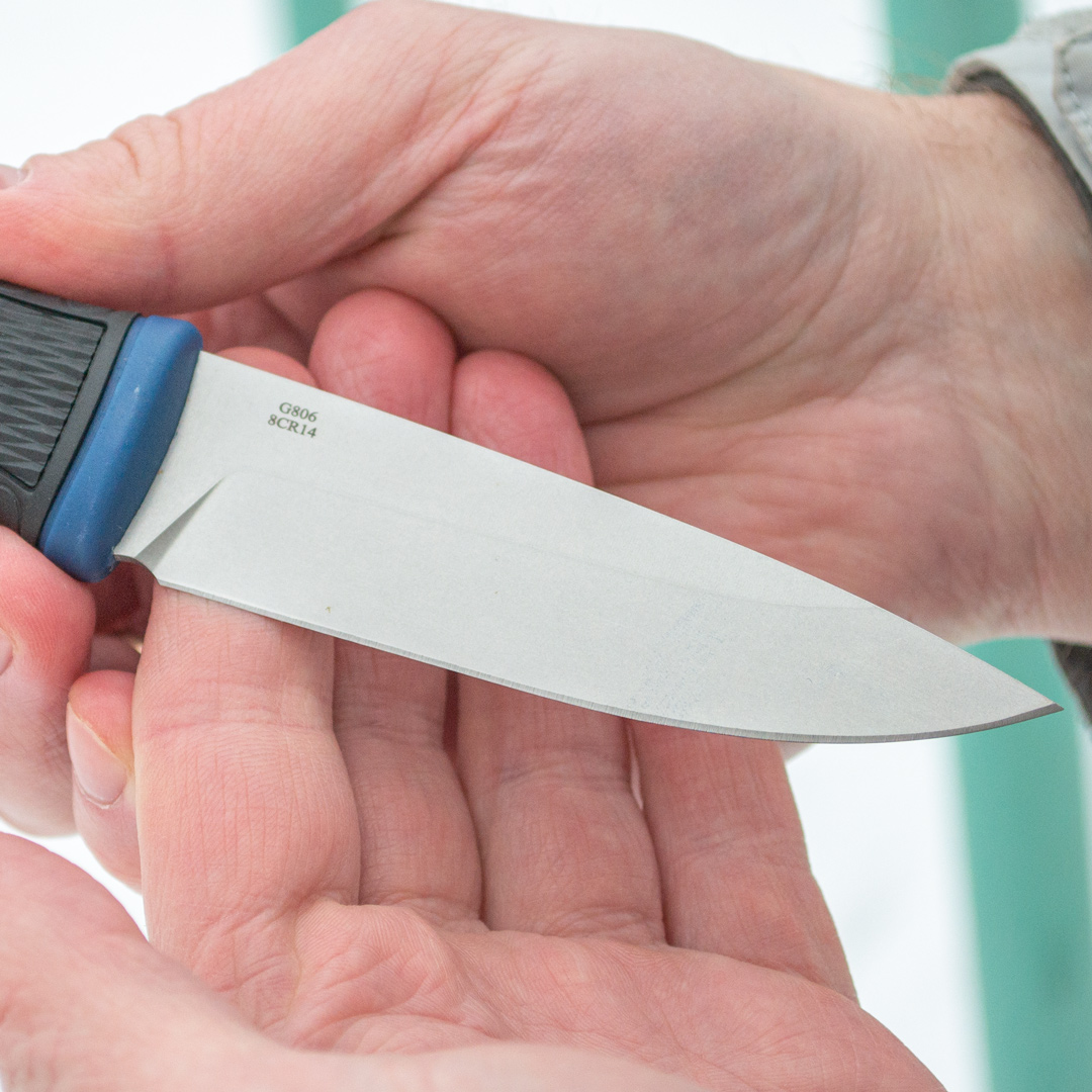Лезо виконано зі сталі марки 8CR14, яка відрізняється багатим вмістом вуглецю (порядку 0,75%) і хрому (14,5%). Твердість сталі оцінюється в 56 одиниць за шкалою Роквелла. Ефективно протистоїть зношування, стійка до корозії, а також досить міцна. Лезо витримує суттєві навантаження під час експлуатації.